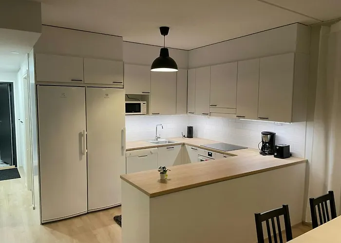 台所で料理を楽しめます。 Spacious Apartment For 6 With Saunaに最も近いバス停は、宿泊施設から0.6kmほどのMarkuksenkuja Eです。